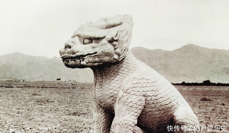 图是麒麟石刻。在皇陵中设置这种石像生,早在两千多年前的秦汉时期就有了。主要起装饰点缀作用,以象征皇帝生前的仪威,表示皇帝死后在阴间也拥有文武百官及各种牲畜可供驱使,仍可主宰一切。