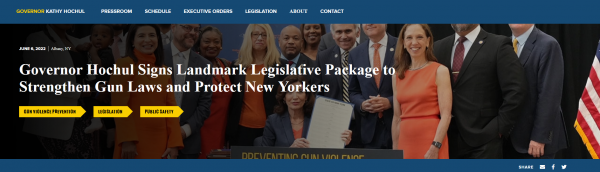 据纽约州政府网站消息,当地时间6月6日,纽约州州长凯茜·霍楚尔(Kathy Hochul)签署了一揽子控枪新法案,内容包括:禁止向未满21岁人员出售半自动步枪,新出产半自动步枪必须应用所谓"微印记"技术以便执法机关从子弹壳辨识并追查作案枪支,扩大没收潜在危险人员枪支的"红旗法案"适用范围,禁止向除执法人员等特殊职业以外人员出售防弹衣,共享涉案枪支信息,禁止使用大容量弹匣等。