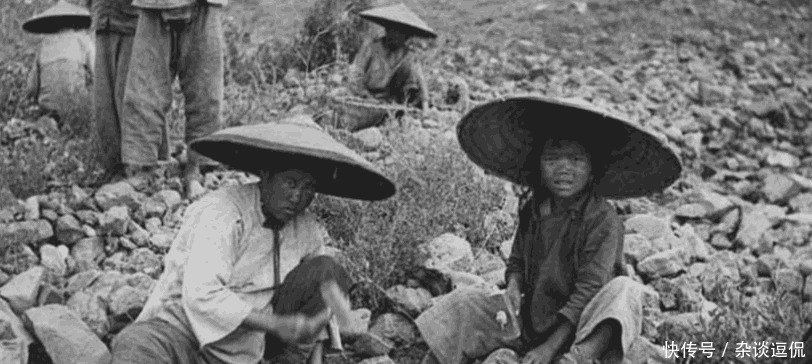 美国人镜头下的晚清老照片:清朝末年在采石场工作的父子两,孩子还小就出来帮忙