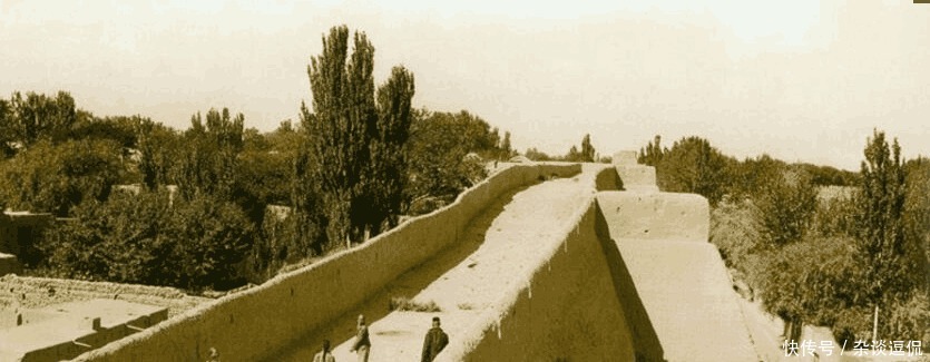 美国人镜头下的晚清老照片:非常有西北特色的土城墙,曾经抵御过许多的敌人,行走在土城墙上的人们