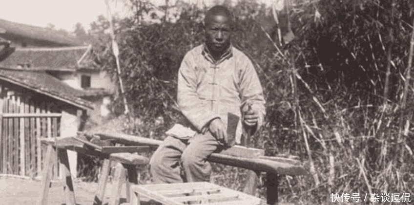 美国人镜头下的晚清老照片:清末时期一名正在做事的巧手木匠