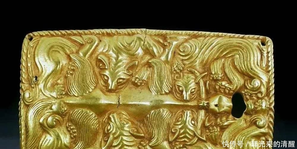 在文物之中,有一顶「鹰顶金冠」,由金冠顶和金冠带两部分组成,这是迄今为止我国所发现的唯一的「胡冠」。自战国赵武灵王胡服骑射以后,胡冠传入中原,将冠上的雄鹰改为赤雉长尾。这种冠饰是武官所服,而匈奴王皆是能征善战的武将,可见这种鹰形金冠饰应是匈奴王或酋长的冠饰。