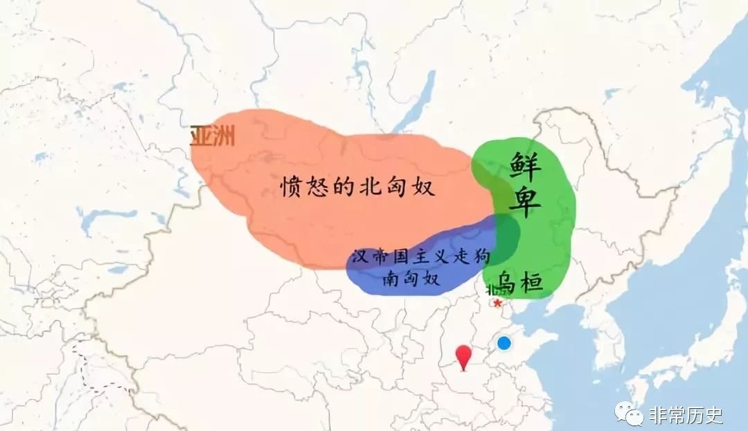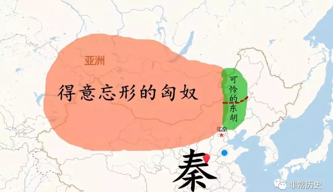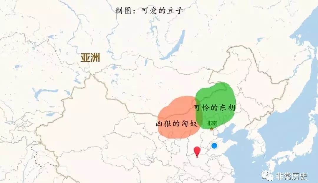 从商周时代开始,匈奴和东胡就存在了,他们的位置大概是这样的: