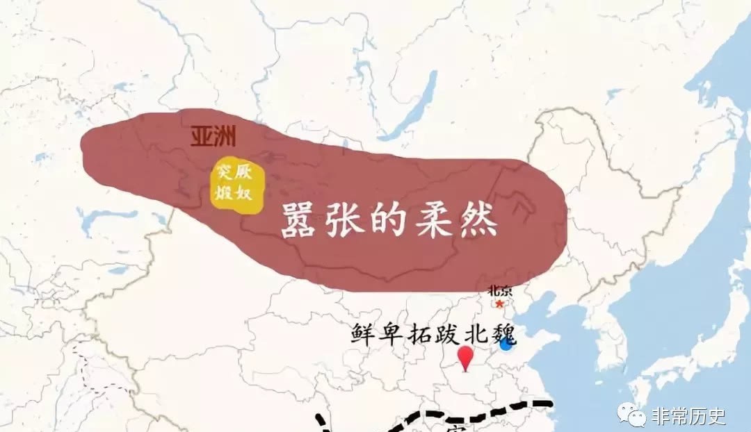 鲜卑拓跋部创立了北魏,这就是南北朝中长江以北的王朝,北魏一直跟柔然死磕。那也是没办法的事情,柔然原本隶属于鲜卑拓跋部,是拓跋的奴隶,成天干苦力,后来拓跋南迁,小柔然也就闯荡成了大柔然,并跟原来的主人掐起了架。