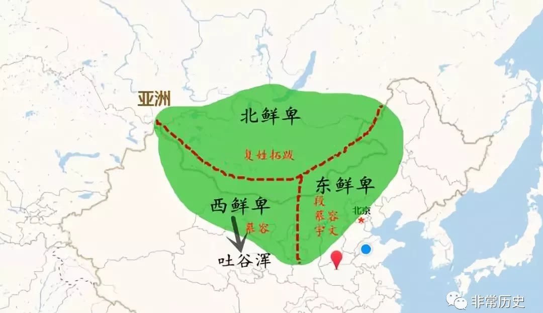 从晋朝到后来的五胡乱华时期,鲜卑分成了东、北、西三大部落。