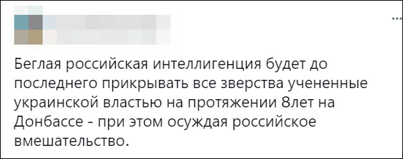 也有人严肃地指出这些知识分子"掩盖乌克兰当局在顿巴斯长达8年的暴行,同时谴责俄罗斯的干预"。