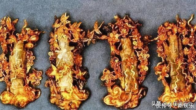 这107件金器价值极高,在1995年,经过专家组评定,其中的22件(套)认定为国家一级文物。最为出名也是最珍贵的,应该是现藏于浙江省博物馆的金带板一副共20件,堪称国宝,足以惊艳世界。