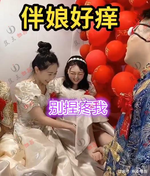 果然在新郎捏脚的时候,很快排除了两个伴娘的脚,他说这个不够宽,另一个伴娘的脚不够厚,后来在第三个和第四个的时候,有点犹豫,不过新郎试着挠脚心,有一个伴娘迅速抽回脚丫,这个也被淘汰了。