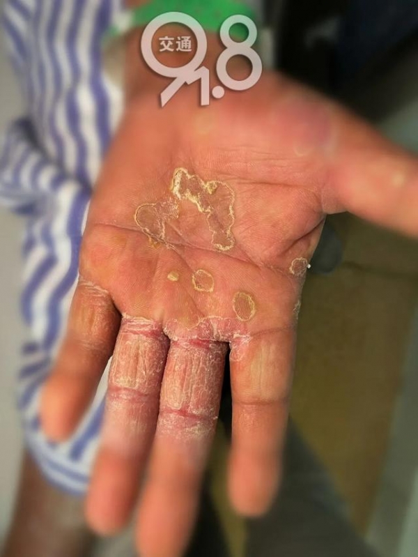 因为患者的支支吾吾,在上一家医院就医时,医生诊断为:银屑病!来到钟剑波门诊,看到患者全身细小的脓疱,并不会太痒,还有既往病史,符合牛皮癣反复发作的情况,也考虑为脓疱型银屑病。