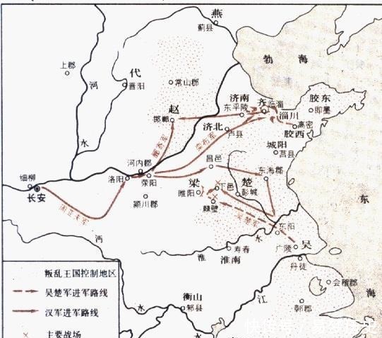 首先,叛军掌握着全国大范围的地区,诸侯王们的封地加起来,下辖三十九郡,而汉朝中央直属领土,不过十五郡。其次,诸侯在封地内部拥有很高的独立性,用专业的词语形容便是拥有"事权":财政,军事。而其中不乏江淮、山东这样的富庶之地,所以经济实力上足以和皇帝打擂台。最后,叛军的跟进速度很快,正月里战火燃起,同月,梁国的四十座城池濒危。