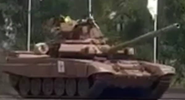 图:阿军装备的基于T-62底盘改装的火力支援车,该型作战车辆在T-62的底盘上集成了一个BMP-2M"别列若克"的炮塔。