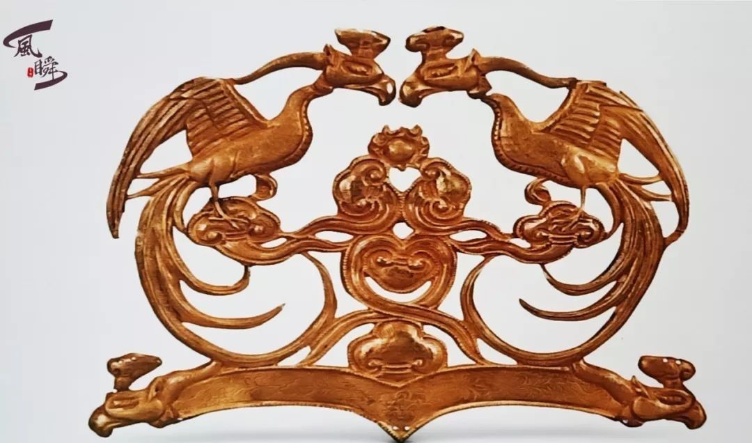 银鎏金对凤纹冠饰