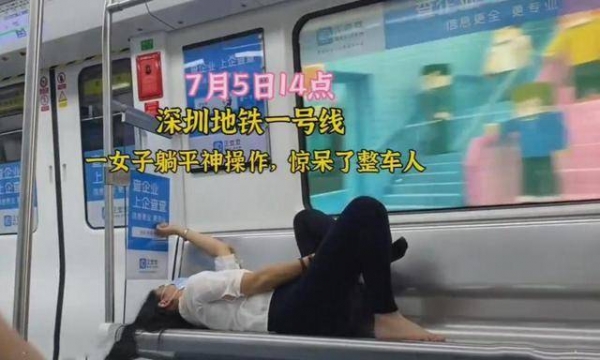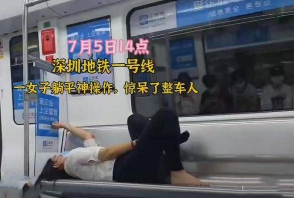 在广东深圳的地铁上一号线,有网友拍到了让人大皱眉头的一幕:一位女子躺在地铁的座位上,脱了鞋子玩手机。