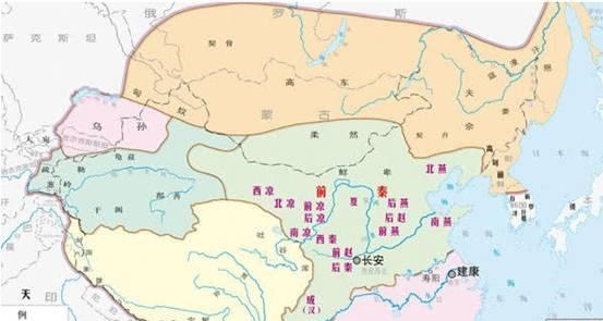 按照时间顺序,我们先说他是东晋十六国的前秦天王。什么是天王呢?苻坚称帝后改名天王,仿照周天子的叫法。苻坚是氐族的一员。他的叔叔是前秦始皇帝苻健。他父亲叫苻雄。苻坚虽然不是汉族人,但他从小就喜欢看书,"性至孝,礼好,学识渊博,多才多艺"。