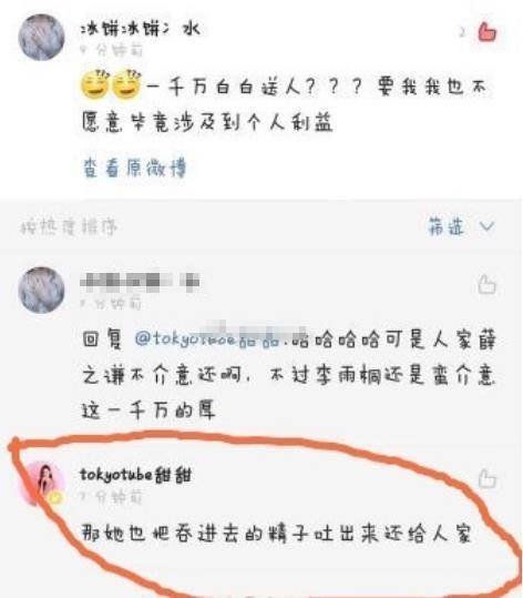 还有在薛之谦被李雨桐锤的时候,她的精彩发言:"李雨桐应该把吞进去的精子还给薛之谦。"