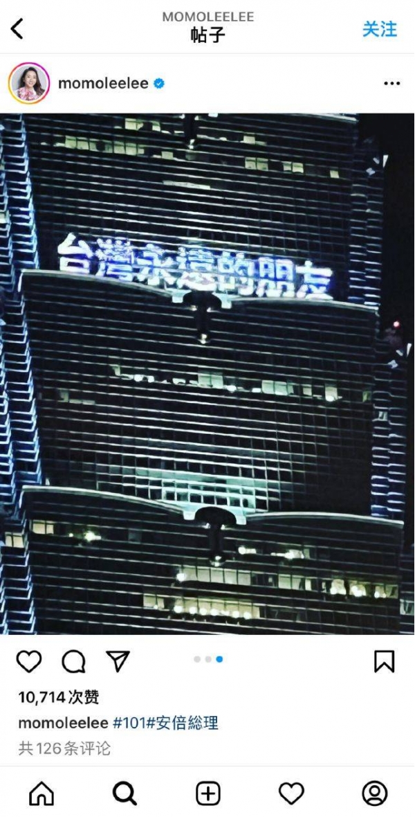 在中国台湾发展的日籍女星佐藤麻衣自然是发文悼念了一番,毕竟是自己国家的前首相,也很是合理。