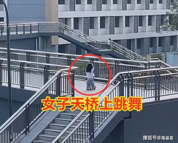 江苏南京,一名女子在马路天桥上跳舞,大叔经过时吓了一跳。