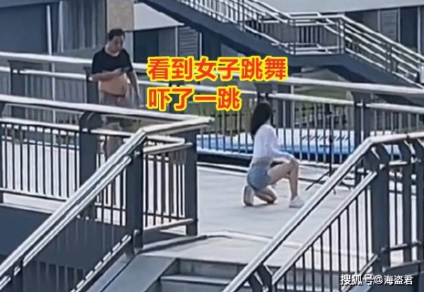 不过 ,由于男子的突然闯入,女子并没有完整跳完舞,因此男子露着肚子经过的画面估计她是不会采用的。