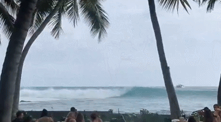 而在当天,巨浪不仅扰乱了墨菲的婚礼,还冲进了居民的家里。据《每日邮报》报道,16日,在凯卢阿·科纳镇以南的金奥浩(Keauhou),两层高联排别墅受到了巨浪侵袭。现场视频显示,一排巨浪越过了别墅的楼顶,淹没了部分房屋和一个停车场。