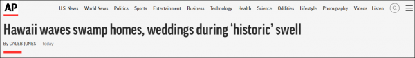 根据美国国家气象局的数据,16日,整个夏威夷岛的许多朝南海岸都出现了"历史性"的海浪状况,导致当地几栋建筑受损,道路被关闭。