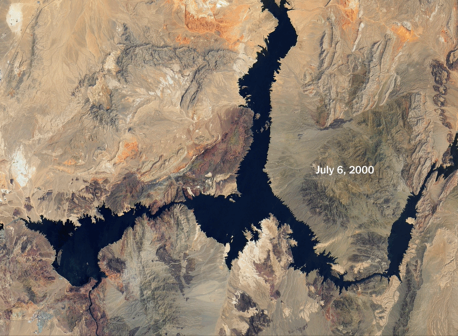 2000年,米德湖一片丰盈水美,深蓝色的湖水淹没湖岸;