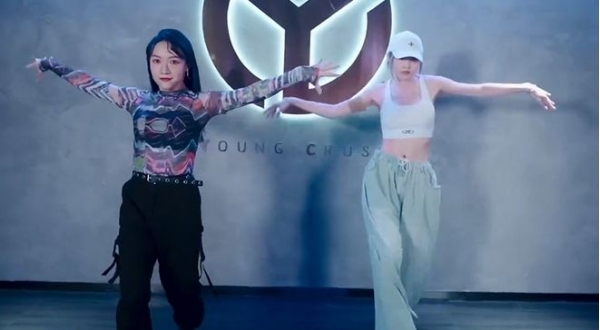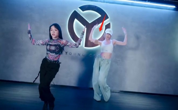 视频中小苹果戴着一顶白色棒球帽,身穿一件紧身短款背心,露出修长的天鹅颈和一截小蛮腰。下身搭配了一条灰色运动裤,一副标准的跳舞穿搭。