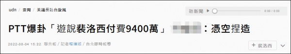 【文/观察者网 刘程辉】美众议院议长佩洛西窜访台湾遭多方舆论批判。8月4日,有岛内网民在台湾PTT论坛上揭露,民进党当局自2018年起就通过公关公司联系游说佩洛西16次,共为此支付高达9400万新台币(约合2128万元人民币)费用。