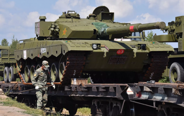中国陆军参赛队队员和96B主战坦克通过铁路运输抵达阿拉比诺训练场 图源:俄罗斯卫星通讯社
