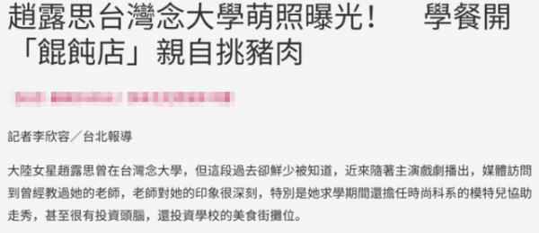 其实关于赵露思在宝岛读大学的事,包括在大学美食街摆摊卖馄饨,台媒此前就有过多次的报道,只是当时赵露思知名度并不高,大家也就没有过度去关注。