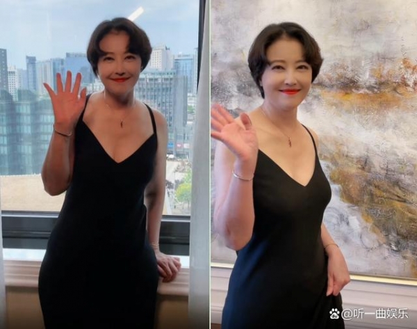 近日,演员周海媚在网上晒出一则自己的性感美照合集视频,并配文表示拍摄很愉快,而她的新造型也是引发一众网友热议。画面中,周海媚身穿黑色深V长裙,领口超低秀出胸前一片洁白肌肤,事业线若隐若现凸显成熟女人韵味。而她扭腰挥手的动作也是彰显出一丝风韵犹存的性感,搭配灿烂笑容,简直不要太养眼。