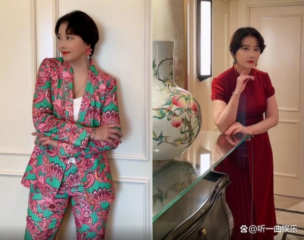 而唤起花西装的周海媚则多了一份拽酷潮流感,双手抱胸视线看向一旁,短发造型看起来干练又成熟。视频的末尾之际,周海媚又身穿起红色紧身旗袍,站在桌前单手托住下巴凹造型,丰腴身材被紧紧包裹勾勒,无论是绝美脸蛋还是凹凸有致的身材,都不似55岁的真实年龄状态。