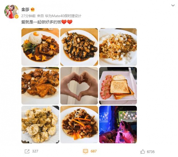 网易娱乐8月31日报道 31日,金莎在社交平台晒照并公开恋情,称"爱就是一起做好多的饭。"她分享了多张美食照,还有和恋人一起比心的照片,看起来很是甜蜜。对此,有媒体向金莎工作人员求证,对方回应称男方是素人,两人已交往半年多,感情稳定。