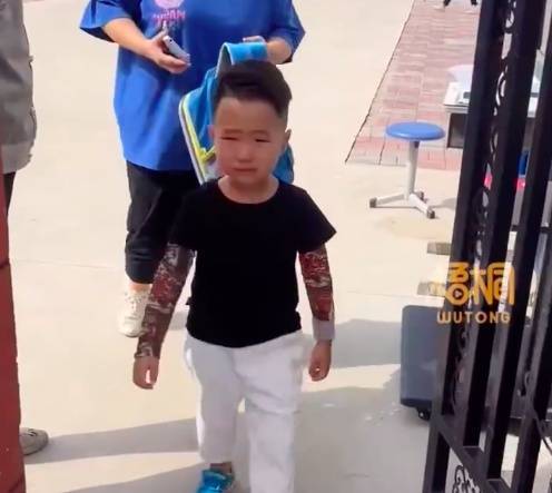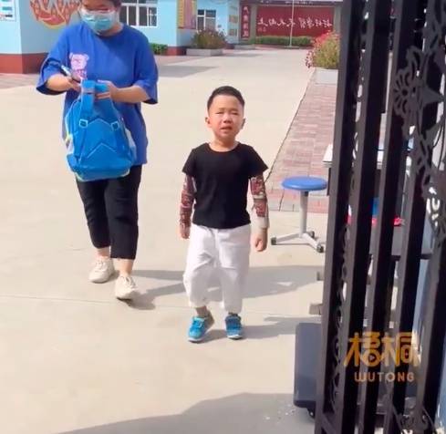 杨女士表示,在幼儿园门口接他的时候,看到他还在哭的样子,感觉很搞笑。所以就拍下来了。