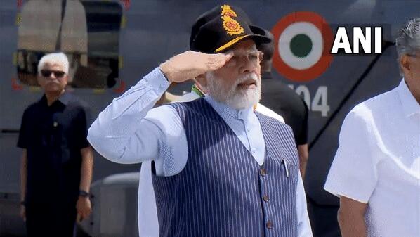 印度总理莫迪向新揭幕的印度海军军旗敬礼 图片来源:印度亚洲新闻网