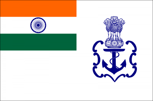1947年印度独立时,暂时沿用英国海军军旗,1950年成立印度共和国后,印度海军军旗继续沿用了英国海军的总体设计,白色旗面上的圣乔治十字部分与英国海军军旗相同,仅将左上角的米字旗更换为了印度的三色国旗。