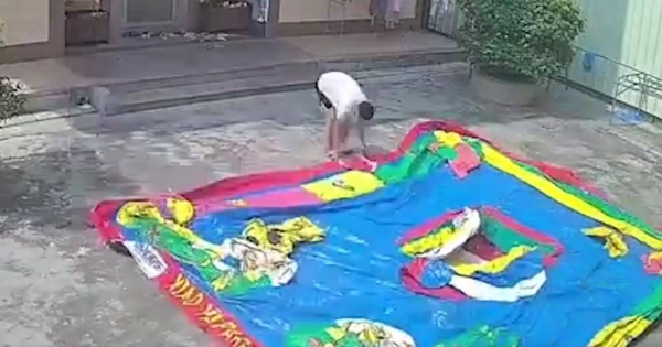 原标题:舅舅给外甥买充气城堡放院子里玩,全家一起找回了童年