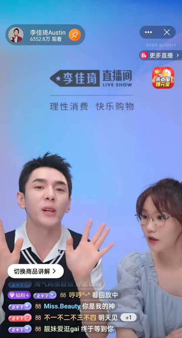 李佳琦还是那个带货强人,但也可以看到直播间与过往相比的变化:直播时间变短了,商品变少了,甚至风格与过去相比也没那么"放得开",李佳琦也多次强调"理性消费,快乐购物"。