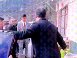 注意"砸"的动作,正常情况下应该是往新人身上撒,而不是砸,而且公公砸的目标是新娘,而不是新郎和新娘。