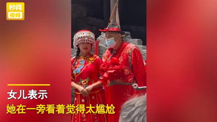 9月28日,湖北宜昌一位女儿晒出和爸爸在景区游览时,遇到的尴尬一幕。当时现场有演员在表演节目抛绣球,没想到"社牛"爸爸一把就接中了。