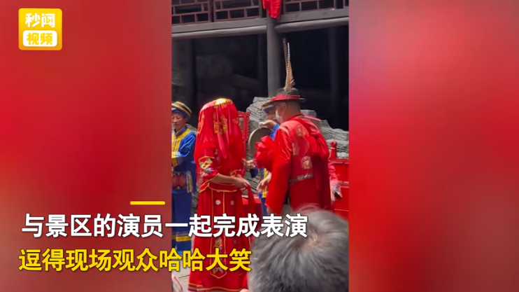 随后从观众摇身一变成为了演员,当场客串新郎。