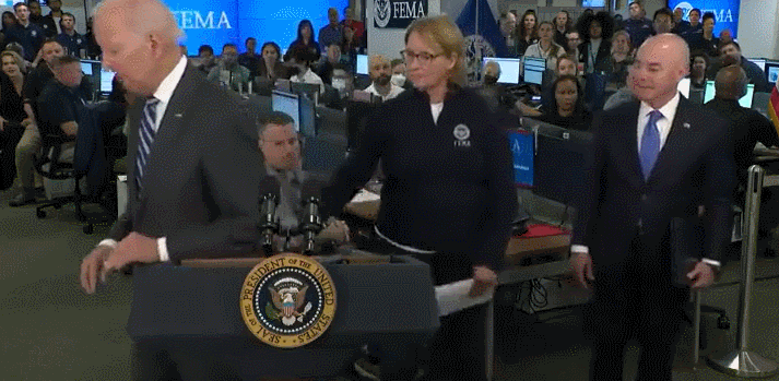 当地时间9月29日,拜登在美国联邦紧急事务管理局(FEMA)总部发表完讲话后,没按该局局长迪安·克里斯维尔(Deanne Criswell)引导的方向走,也没听见她的提醒,自顾自地走向了另一边。这一幕在社交平台引发热议。