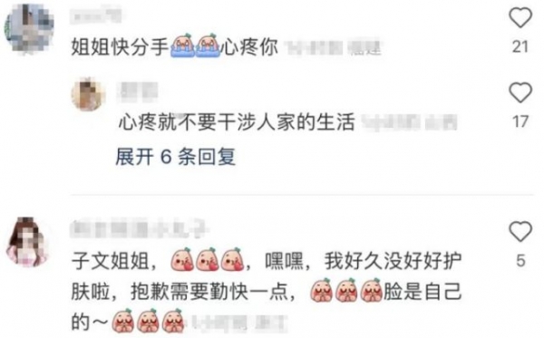 不仅如此,前几日分享护肤的王子文,还有不少网友跑到她评论区劝她和吴永恩早点分手,虽说王子文并没有进行任何回应,但从全网磕到不被看好,王子文应该有注意到网友对于她和吴永恩感情态度的转变。