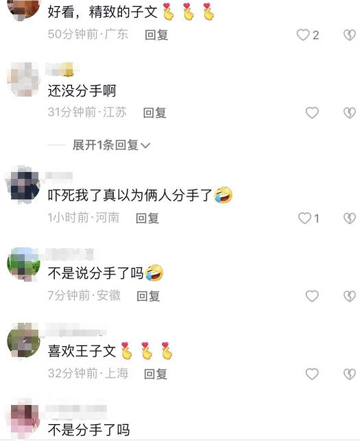 值得一提的是,此次合体高调现身机场的王子文和吴永恩算是用实际行动打破分手传闻,网友看后纷纷留言:"没分手,好甜""吓死我了,真以为你俩分手了"。