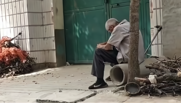 某地一个老人,在儿子家大门口坐了好久,只为吃一顿饭。可是等了将近一个小时,也没人开门,老人只能无奈地站起来走了。