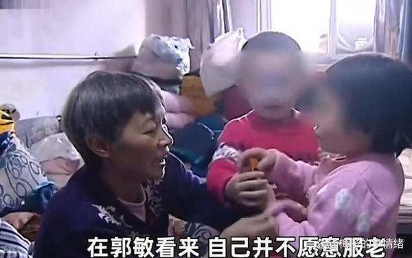 事件回顾:画面中这个头发花白的女人叫郭敏(化名),她正在哄着的不是自己的孙子和孙女,而是她的一对双胞胎儿女。