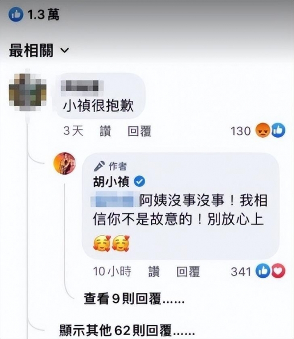 就在昨天,风波当事人胡盈祯姗姗来迟,在社交平台上大方回复Ella的妈妈"阿姨没事没事!我相信你不是故意的!别放在心上"。