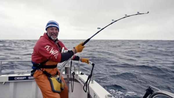 "鱼被带到船上进行测量,然后被拖到船尾后面,以确保定期向鳃供应氧气,然后再将其放回海洋。"
