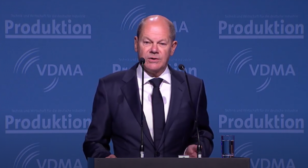 (德国总理朔尔茨当地时间10月11日在出席柏林机械工程峰会时发表讲话 图自德媒)