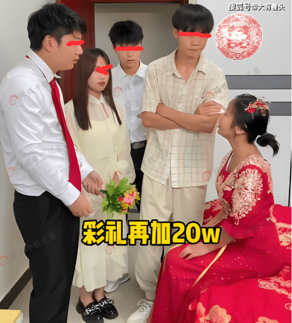 从视频中看到,新娘很漂亮,新郎也不错,可新郎带着人到新娘房中的时候,本以为可以顺利地把新娘接走,可是新娘当即提出"我要加20万彩礼,给我弟弟结婚用,我弟弟也要结婚了",新郎一听这话,当场表示反对,"我结婚已经准备好了20万彩礼,你又要加20万,我拿不出40万彩礼"。