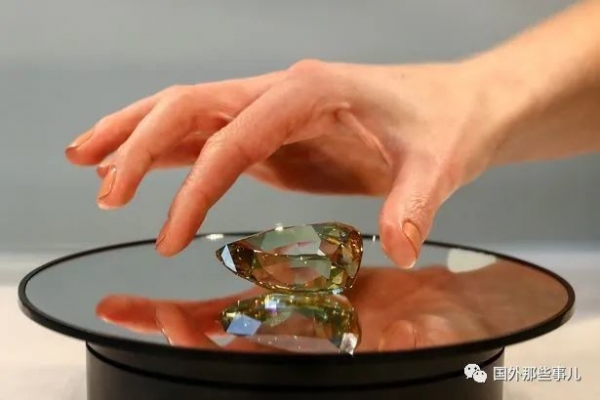2022年10月17日,一颗300 克拉的钻石在迪拜展出,估价为1300 万英镑(约合人民币1.06亿元)。这颗梨形钻石因其深黄色而被命名"金丝雀",并将于12 月由苏富比拍卖。
